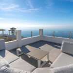 Först och främst kommer du att förälska dig i den spektakulära inglasade terrassen. Detta utrymme blir nämligen hemmets hjärta och erbjuder en ljus och varm tillflyktsort året runt. Till exempel kan du föreställa dig att äta frukost i lugn och ro med en panoramautsikt som kombinerar Nerjas typiska vita hus med Medelhavets djupblå färg.